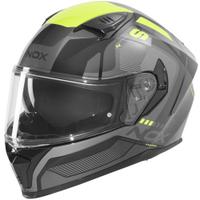 A NOX N402 motoros bukósisak polikarbonát héjszerkezettel rendelkezik, beépített napszemellenzőt kínál, valamint biztonsági rendszerrel van ellátva az arcpárnák gyors eltávolításához.