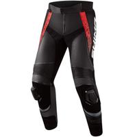 A bőr motoros nadrág minőségi szabvánnyal rendelkező térdprotektorokkal, 3D ergonomikus kialakítással, sztreccs panelekkel és perforációkkal rendelkezik a jobb légáteresztés érdekében, így nagyszerű illeszkedést és magas szintű biztonságot nyújt.